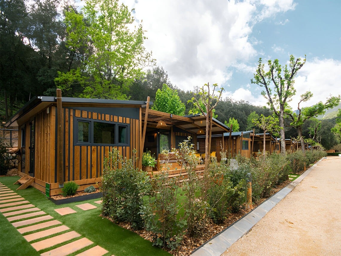 De Bassegoda bungalows bieden plaats aan maximaal 5 personen en zijn omgeven door bomen en tuinen. Ze zijn volledig uitgerust voor uw comfort. Ze zijn perfect voor gezinnen met kinderen of groepen! De Bassegoda bungalows beschikken ook over een laadstation voor elektrische auto's en parkeergelegenheid.