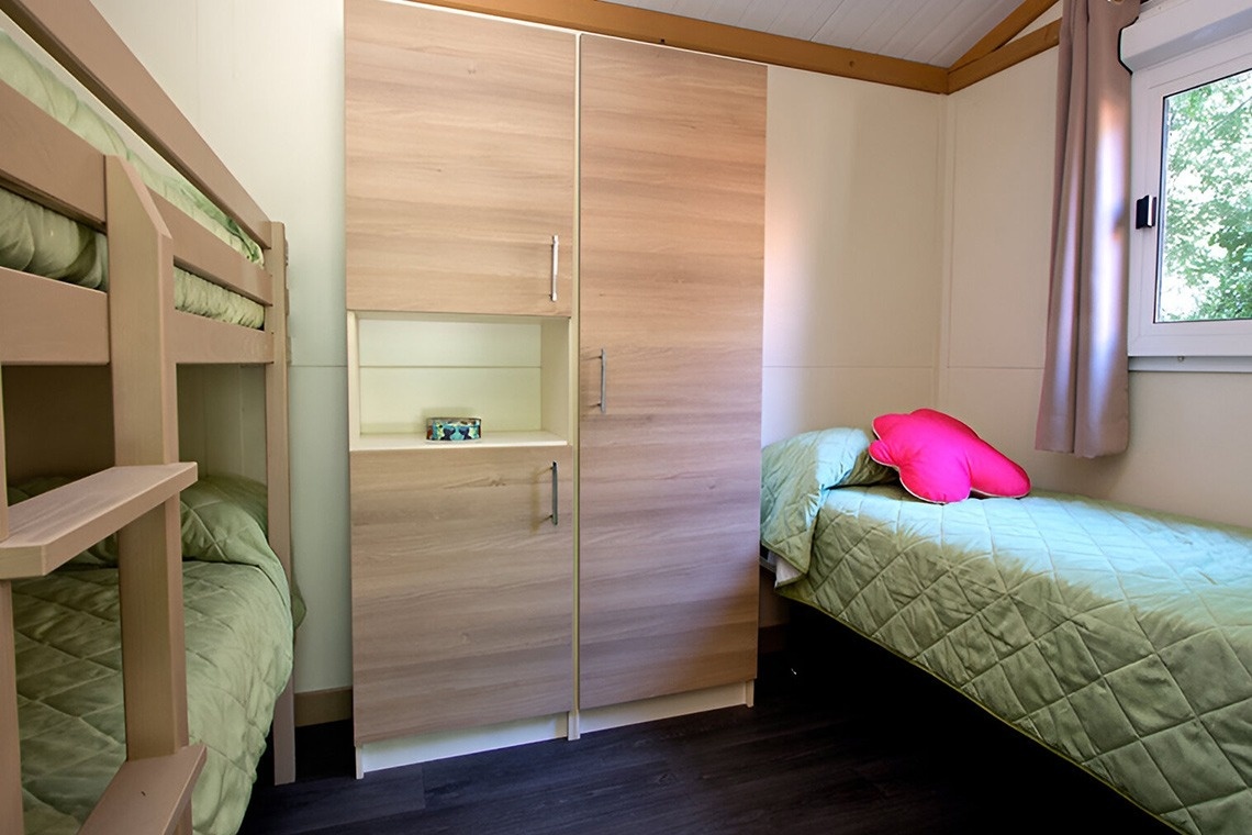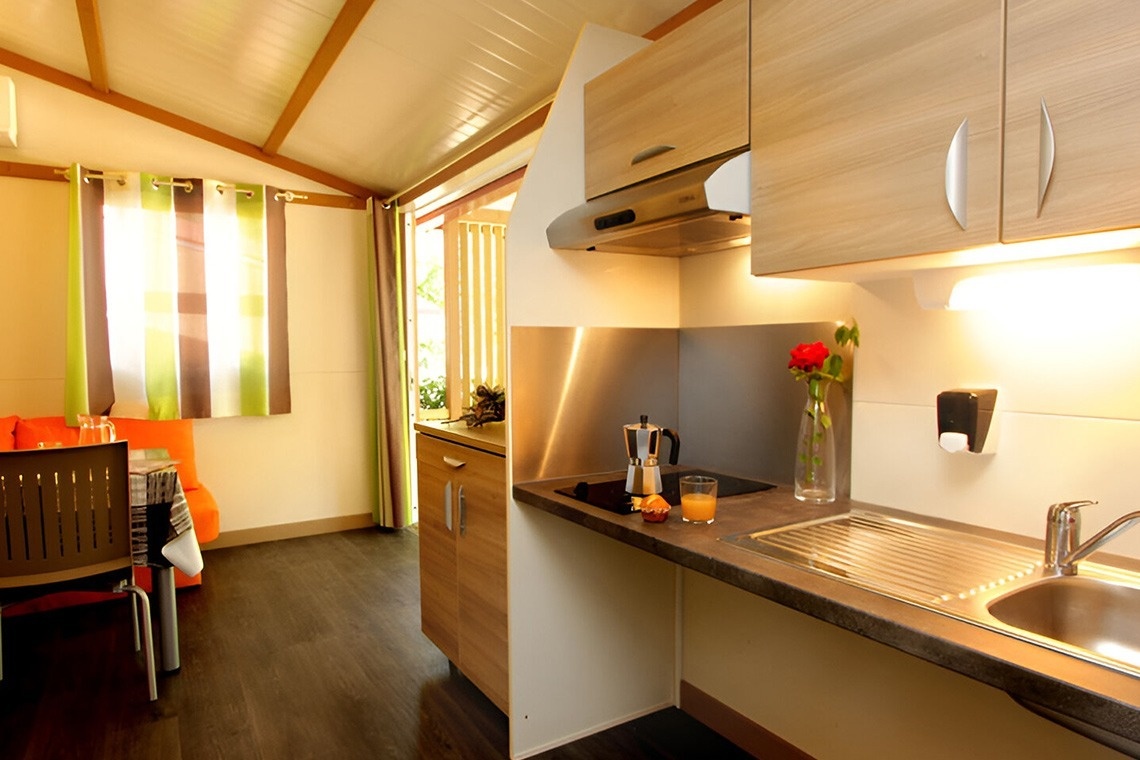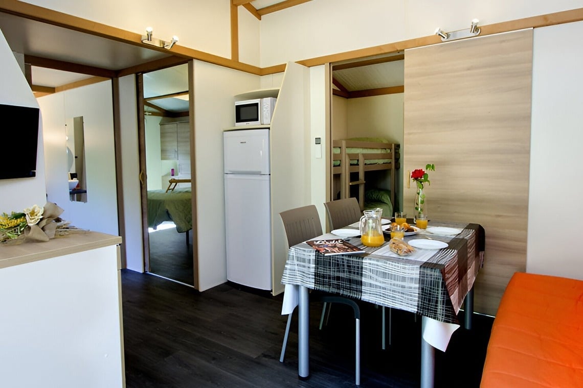 De bungalows Morea hebben een oppervlakte van 33 m2 (23 m2 woonoppervlak) en zijn als volgt verdeeld: